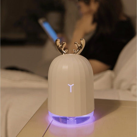 MistAura - Sød gevirformet luftfugter med blødt lys for et hyggeligt og forfriskende rum