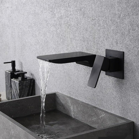 Denne vægmonterede vandfaldshane tilføjer et moderne og sofistikeret touch til badeværelser eller køkkener. Den brede tud skaber en jævn, kaskadende vandstrøm, der efterligner den blide bevægelse af et vandfald. Designet til både skønhed og funktionalitet, forbedrer den ethvert rum ubesværet.