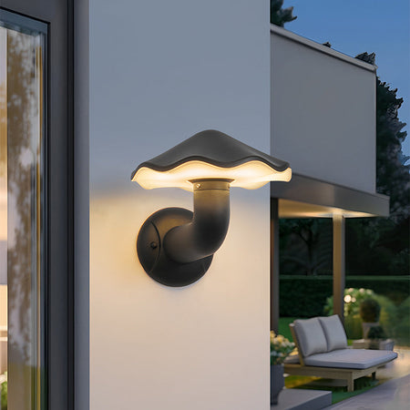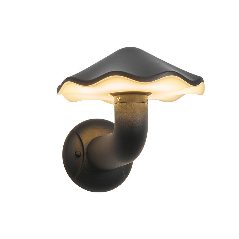 Denne udendørs væglampe har en svampeinspireret form fremstillet i aluminium og PC-materiale med sort finish. Med sit vandtætte design giver den pålidelig LED-belysning, der egner sig til terrasser, havevægge og indgange. Holdbar og praktisk leverer den udendørs belysning året rundt i en enkel og moderne form.