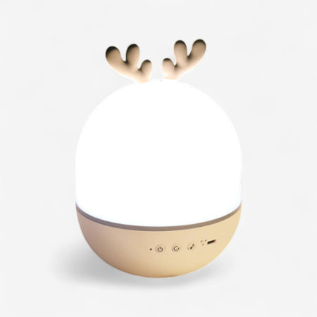 NightTone stjerneprojektoren viser lysmønstre på tværs af lofter og vægge og har en indbygget højttaler. Den bruger et genopladeligt batteri til ledningsfri placering og kan placeres på borde, hylder eller andre plane overflader.