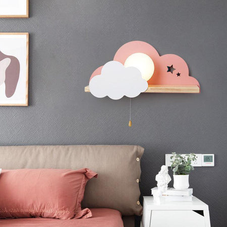 Nordische Macaron-Wolken-Wandleuchte aus Glas und Holz mit 1 Licht