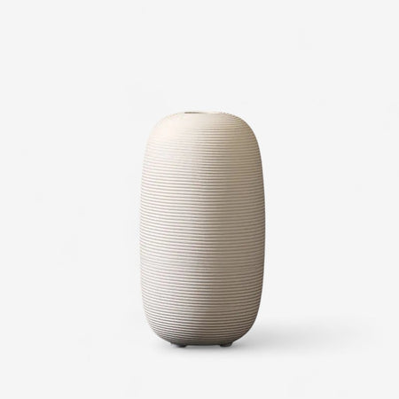 Denne keramiske vase har en enkel form og er velegnet til at holde blomster, tørrede blomster eller som dekorativ genstand. Den kan placeres på borde, hylder eller andre overflader i hjemmet. Designet gør det muligt at matche forskellige typer indretning.
