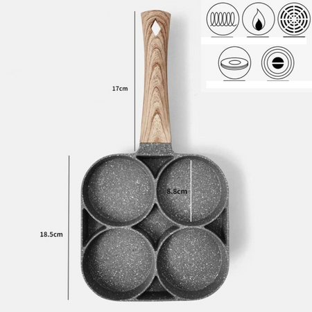 OmeletMaster forenkler travle morgener ved at give dig mulighed for at tilberede flere morgenmadsprodukter samtidigt. Med fire separate sektioner kan du lave lækre omeletter, pandekager, spejlæg eller endda mini-crepes – alt sammen på én gang! Denne multifunktionelle stegepande er designet til at spare dig tid og gøre morgenmaden mere behagelig for hele familien.