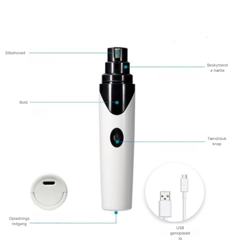 PawPerfect – Genopladelig kæledyrsneglesliber med flere vedhæftede filer