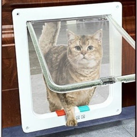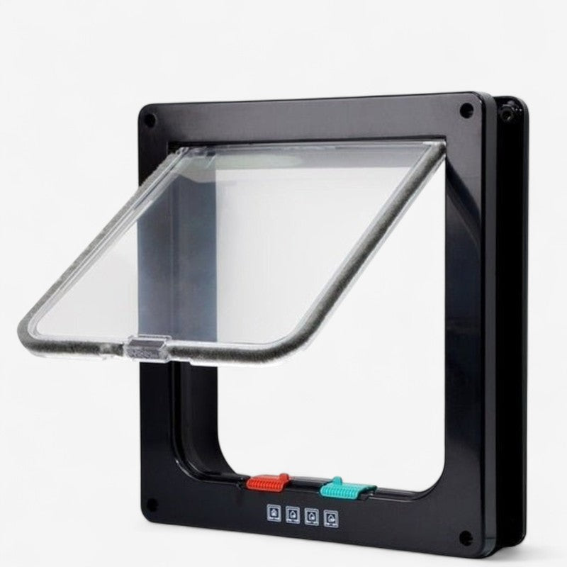 PawSafe kattelem giver din kat mulighed for at passere, samtidig med at du har kontrol over adgangen med dens 4-vejs låsesystem. Den kan indstilles til kun indgang, kun udgang, begge dele eller helt låst. Fremstillet af holdbar plastik, tilbyder den en sikker og praktisk løsning til at styre kæledyrs bevægelse.