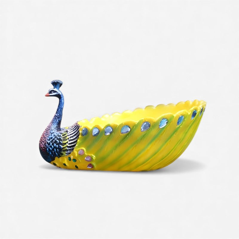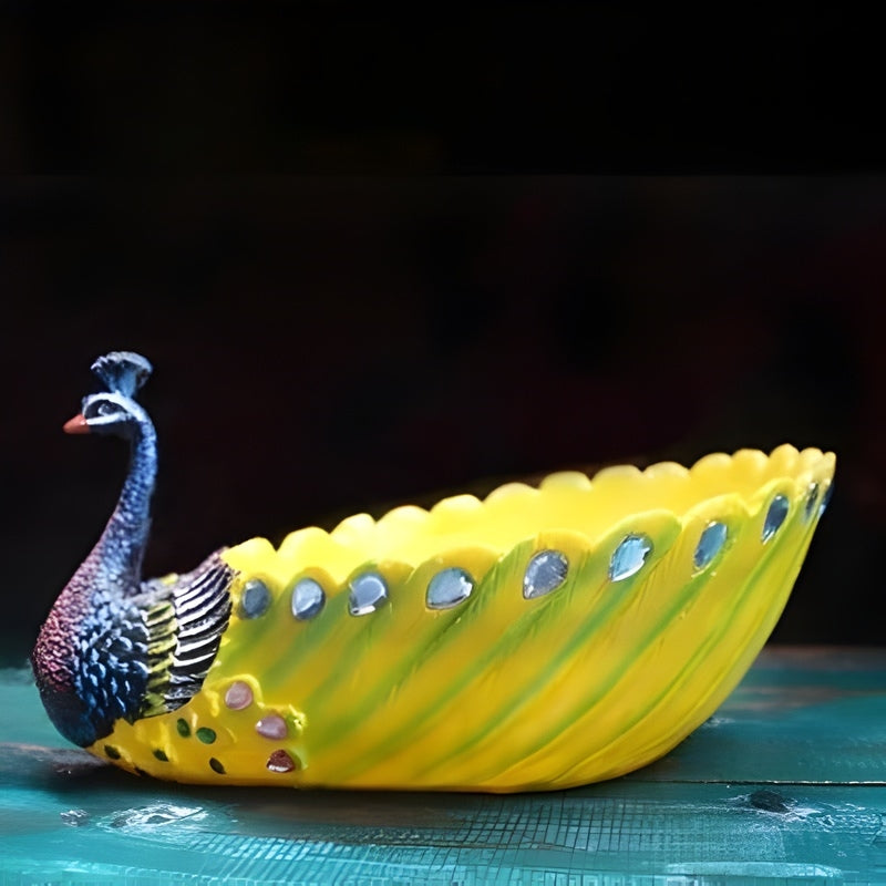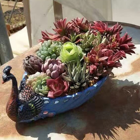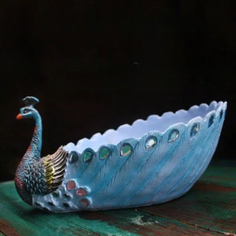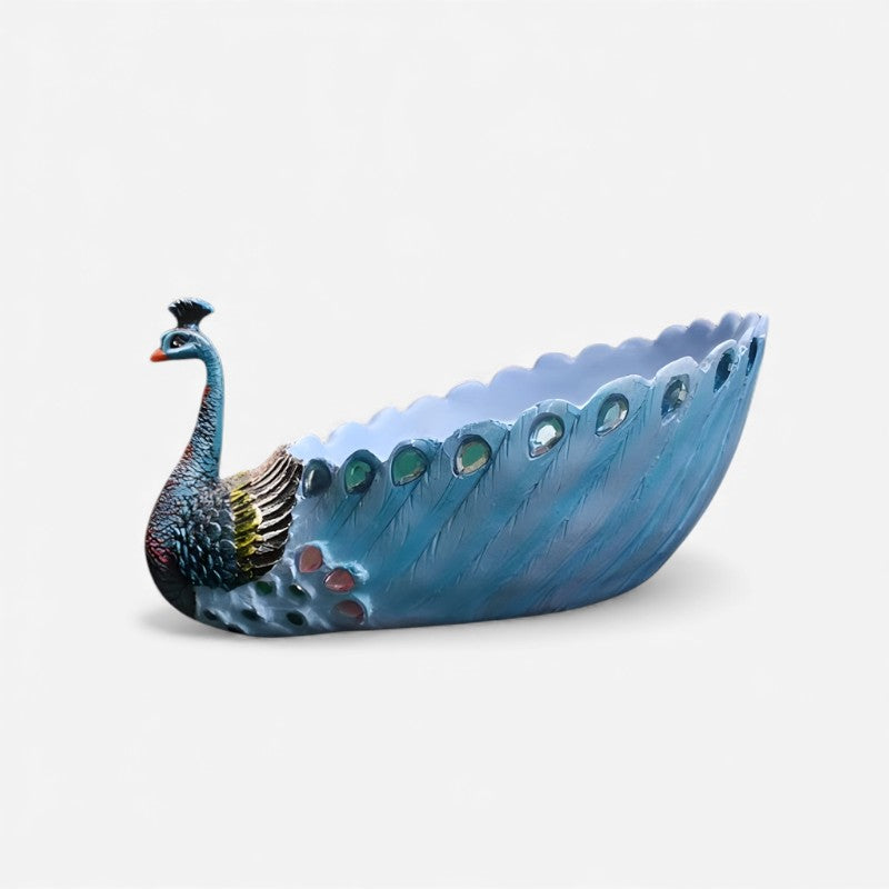 PeaCraft blomsterpotten har et påfugleinspireret design, der tilføjer en dekorativ detalje til forskellige omgivelser. Fremstillet i resin fungerer den som et tilbehør til fremvisning af planter eller arrangerede genstande og har en solid enkeltstykkeform for stabil placering.