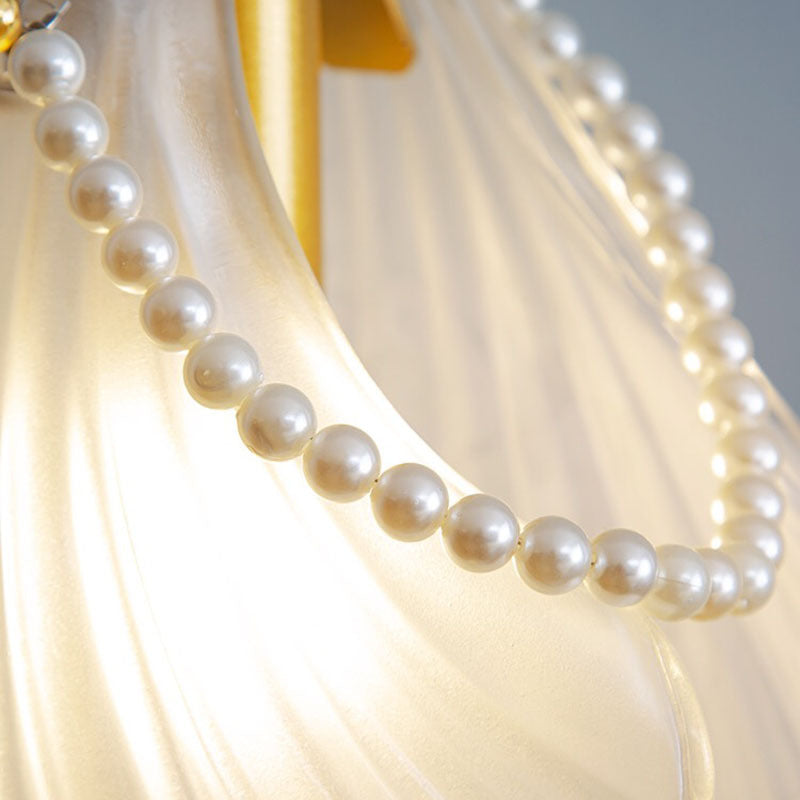 Skalsformet pendellampe designet til moderne indendørs rum. PearlaGlow pendellampen har en gennemsigtig skærm, der blidt spreder lyset og skaber en varm og jævn belysning. Fremstillet med metal og diskrete perle-detaljer, egner den sig til stuer, spisestuer, soveværelser eller gange.
