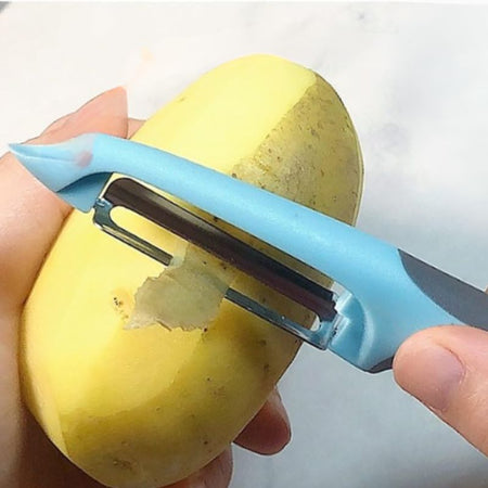 PeelMaster køkkenskrælleren er designet til at skrælle frugt og grøntsager med lethed. Dens kompakte struktur sikrer en ren og ensartet skrælning og passer perfekt ind i den daglige madlavningsrutine.