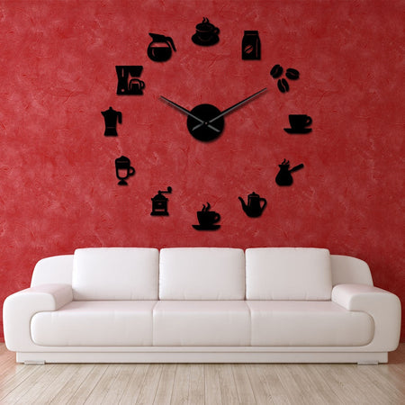 PerkTime bringer et kreativt touch til dit rum med sit rammeløse design med kaffekopper og bønner. Perfekt til kaffeelskere, dette gør-det-selv-vægur forvandler ethvert køkken, café eller stue til hyggelige og stilfulde omgivelser. Dens store størrelse gør den til et slående midtpunkt på enhver væg.