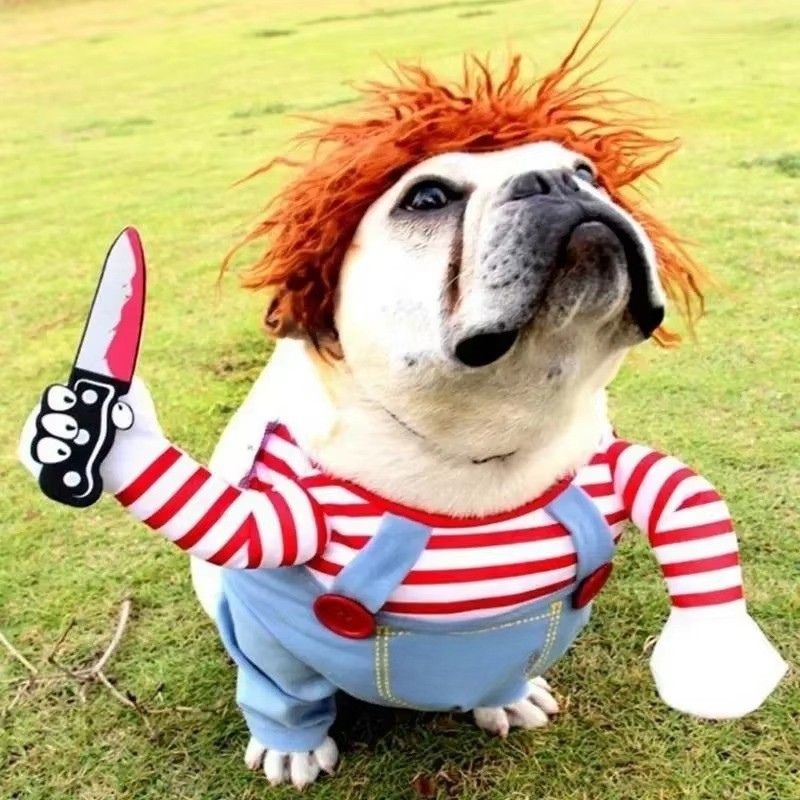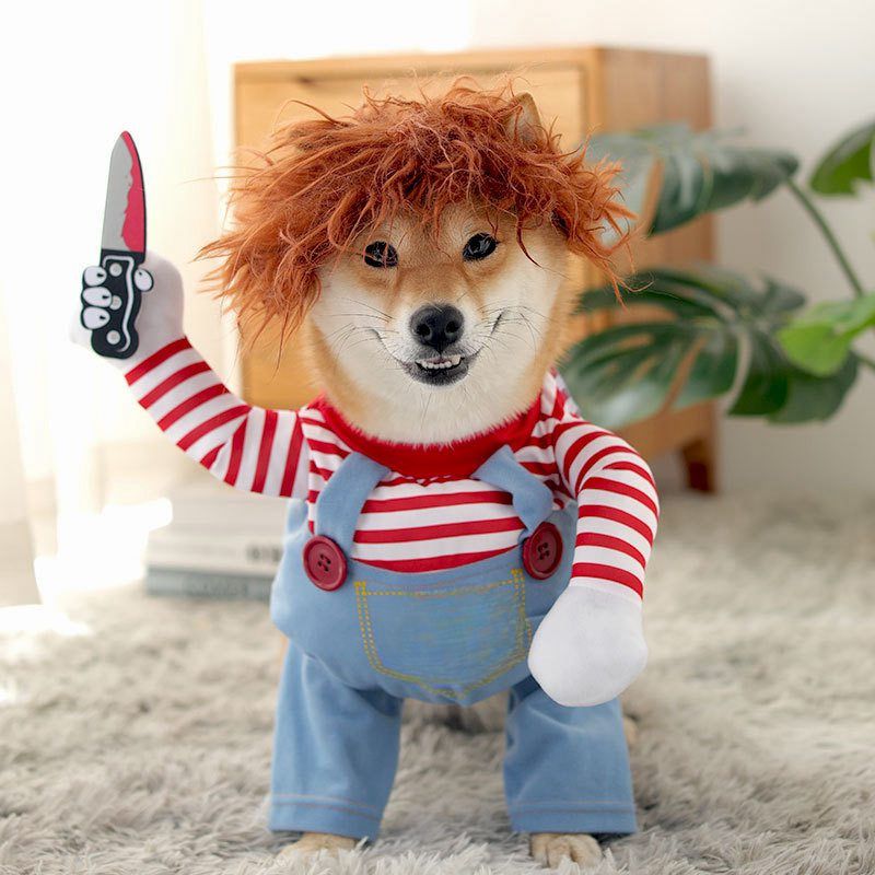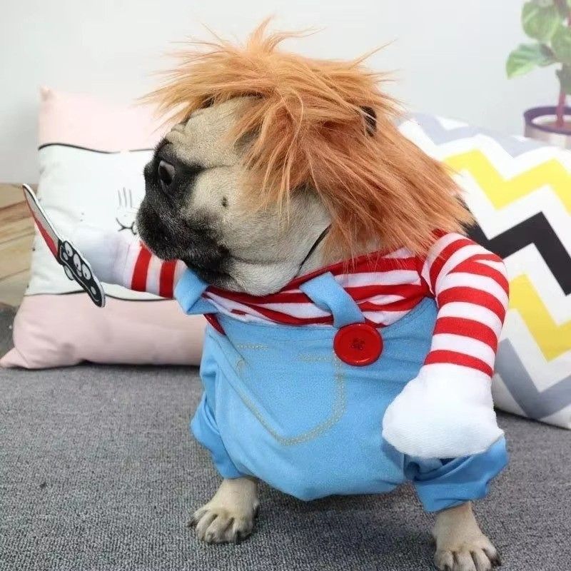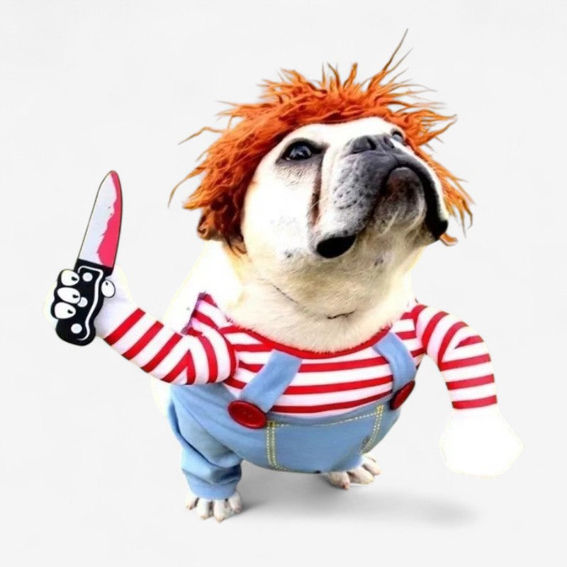 Dette kæledyrskostumesæt indeholder en hat og outfitdele. Hver del har en struktureret form. Sættet er let og lavet til nem håndtering.