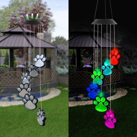 PetGlow - farveskiftende poteaftrykslys til oplyste haver er den perfekte måde at ære dit elskede kæledyr på eller tilføje et finurligt præg til dit udendørsområde. Designet til at svaje blidt som en beroligende vindklokke, oplyser disse solcelledrevne poteaftryk din have med levende farver, der skifter smukt, når natten falder på. Ved at udnytte solenergi, der er lagret i løbet af dagen, forbedrer PetGlow ikke kun din haves charme, men er også en tankevækkende gave til kæledyrselskere.