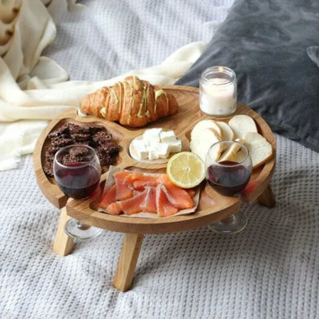 Bærbart klapbord med indbygget glasholder til udendørs sjov