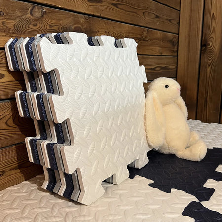 Det sammenkoblingsdesign gør det muligt at opsætte hurtigt og nemt, så du kan tilpasse legeområdet til enhver plads. De lette stykker kan omarrangeres, hvilket gør det perfekt til brug derhjemme eller på farten. Tæppet er nemt at rengøre, hvilket sikrer, at det forbliver et hygiejnisk legeområde for dit barn.