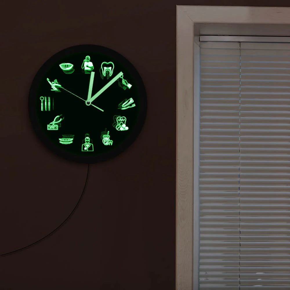 PrecisionTime – Elegant LED-vægur med design af tandlægeudstyr og flerfarvet lys