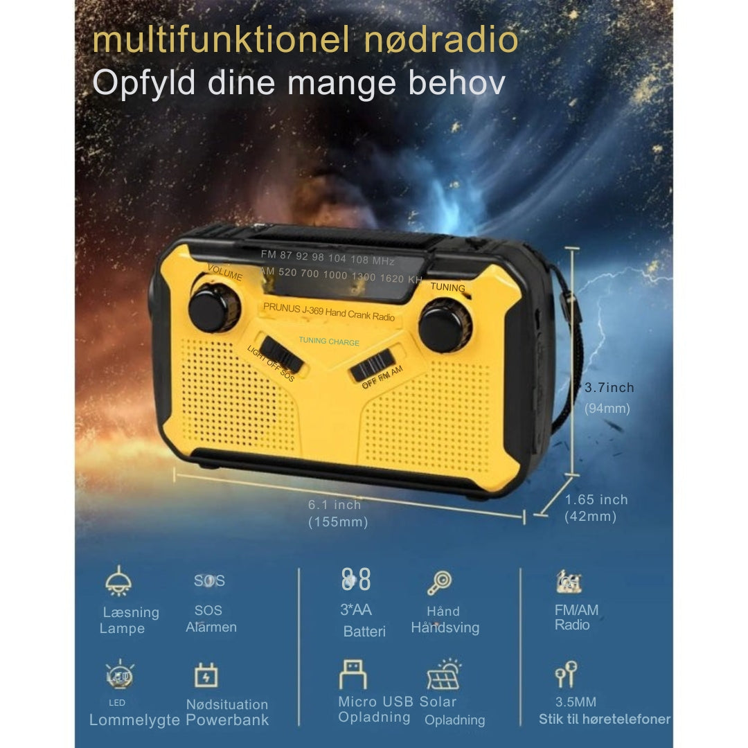Denne bærbare nødradio sikrer pålidelig adgang til vigtige udsendelser, når der er brug for det. Den har flere strømindstillinger, hvilket gør den til et pålideligt værktøj i nødsituationer. Den indbyggede powerbank giver mulighed for at oplade vigtige enheder på farten. Uanset om du er hjemme eller ude, kan du altid være forberedt og informeret.