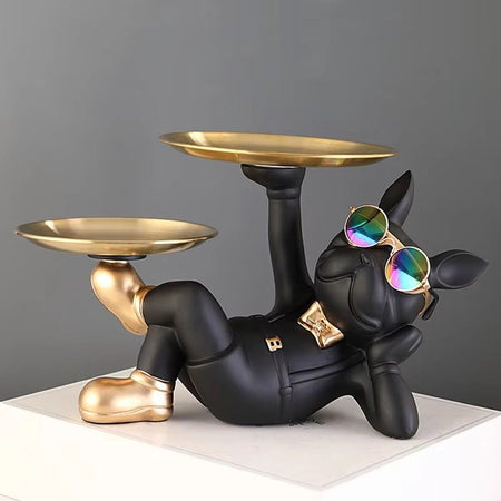 Denne hundeformede skulptur er velegnet til visning på borde, hylder eller skriveborde. Den har en kompakt struktur til indendørs placering.