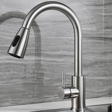 PureFlow køkkenhanen har et udtrækkeligt sprayhoved for større fleksibilitet og nem adgang. Den enkle håndtagsdesign gør det nemt at kontrollere vandtemperaturen og flowet, hvilket gør opgaver som skylning og rengøring mere effektive. Det udtrækkelige sprayhoved tilføjer alsidighed til daglig brug i køkkenet.