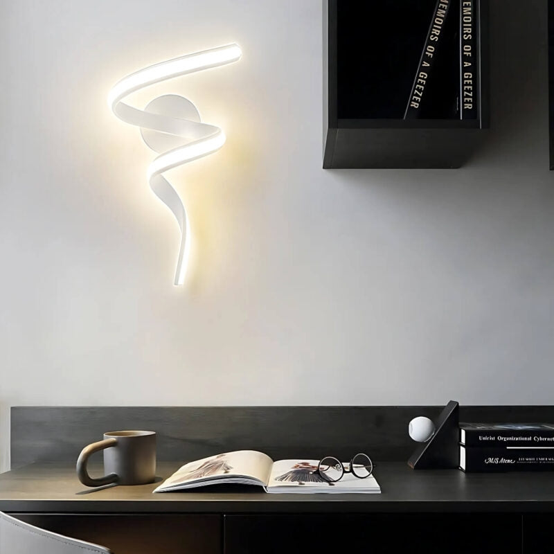 RadiantLoop spiralvæglampen kombinerer dekorativ stil med indbygget LED-belysning. Designet til vægmontering giver den ensartet lys, samtidig med at den fungerer som et moderne designelement.