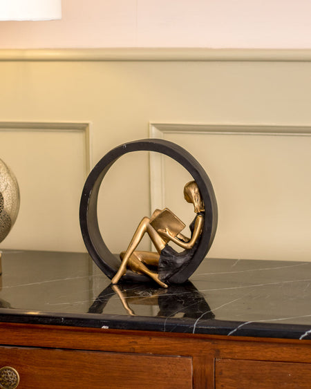 ReadingGrace - Udsmykket statue af en pige, der læser en bog, til et moderne rum