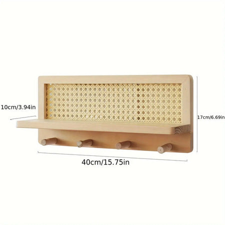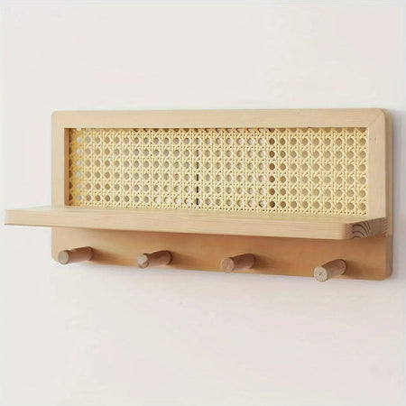 RetroShelf - Vintage væghylde i træ med kroge til stilfuld og organiseret opbevaring
