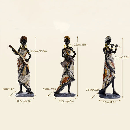 RhythmMuse - Skulptur af afrikansk kvindelig musiker med levende detaljer