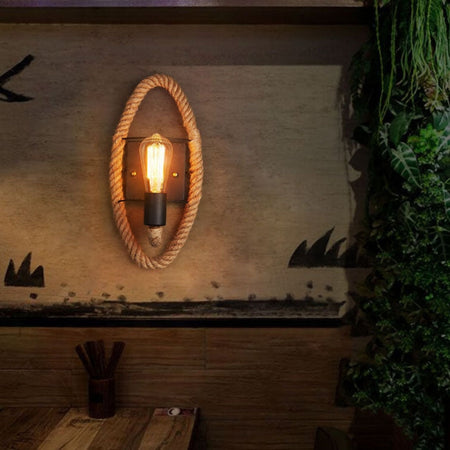 RopeLume – Vintage Hampreb Væglampe med Glasskærm