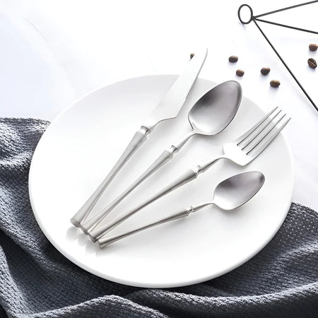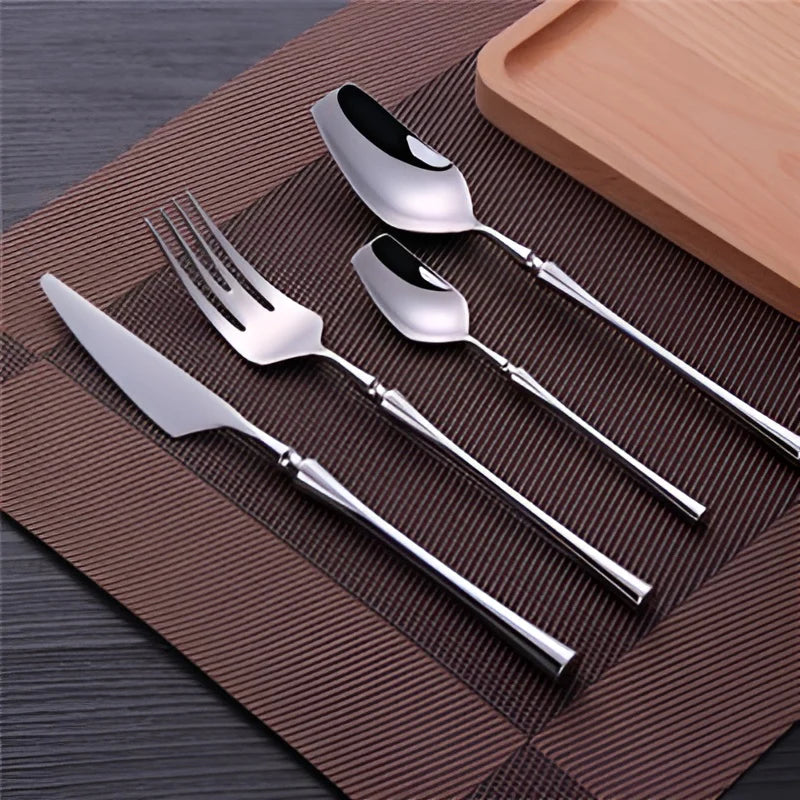 RoyalEssence bringer elegansen af fine dining direkte til dit hjem. Med sit omhyggeligt udformede design forvandler dette bestiksæt hvert måltid til en ekstraordinær oplevelse, der blander skønhed med langvarig holdbarhed.
