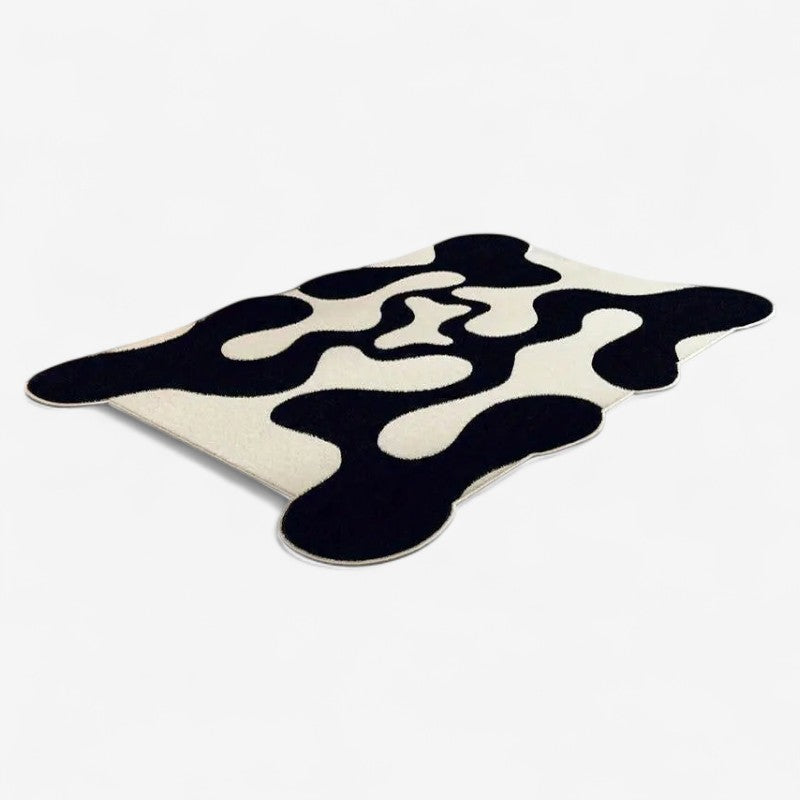RugForm gulvtæppet har en uregelmæssig form og er færdiggjort med en skridsikker bund. Tæppet er beregnet til placering på gulve i stuer eller soveværelser.