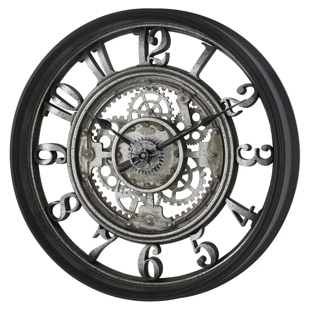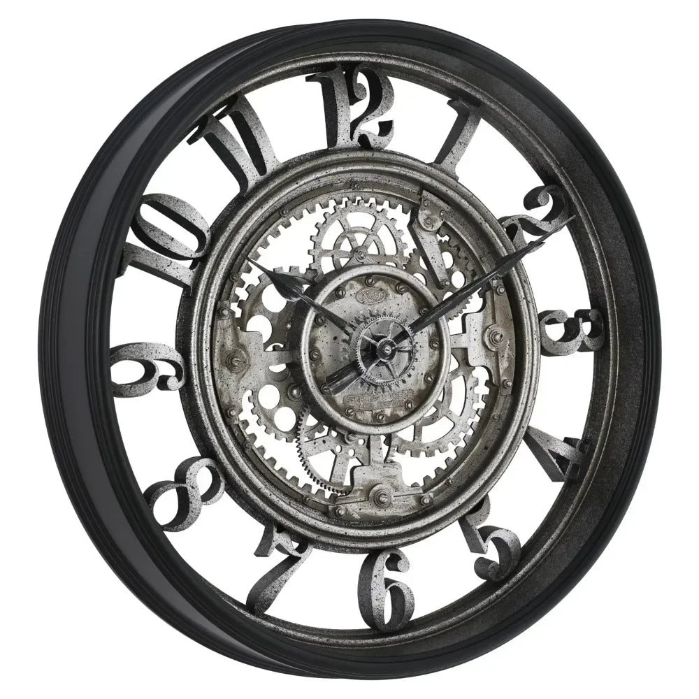 Tilføj karakter til dit rum med dette slående vægur, der kombinerer industriel charme med tidløs elegance. Med en robust metalramme og dristige arabiske tal skaber den et fokuspunkt i ethvert rum. Dets vintage-inspirerede design blander sig ubesværet med moderne og traditionelle interiører.