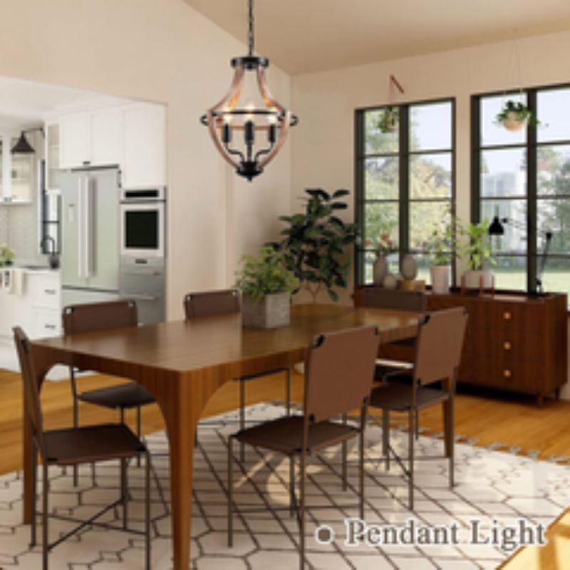 RusticLume lysekronen med 4 lys kombinerer rustik charme med holdbar konstruktion. Den er fremstillet af sort metal og fremhævet med varm træstruktur, hvilket giver et hyggeligt og stilfuldt præg til spisestuer, gange eller soveværelser. Dens planmonterede design gør den ideel til standardlofter og giver elegant omgivende belysning, samtidig med at den blander vintage landlig æstetik med praktisk og langvarig funktionalitet.