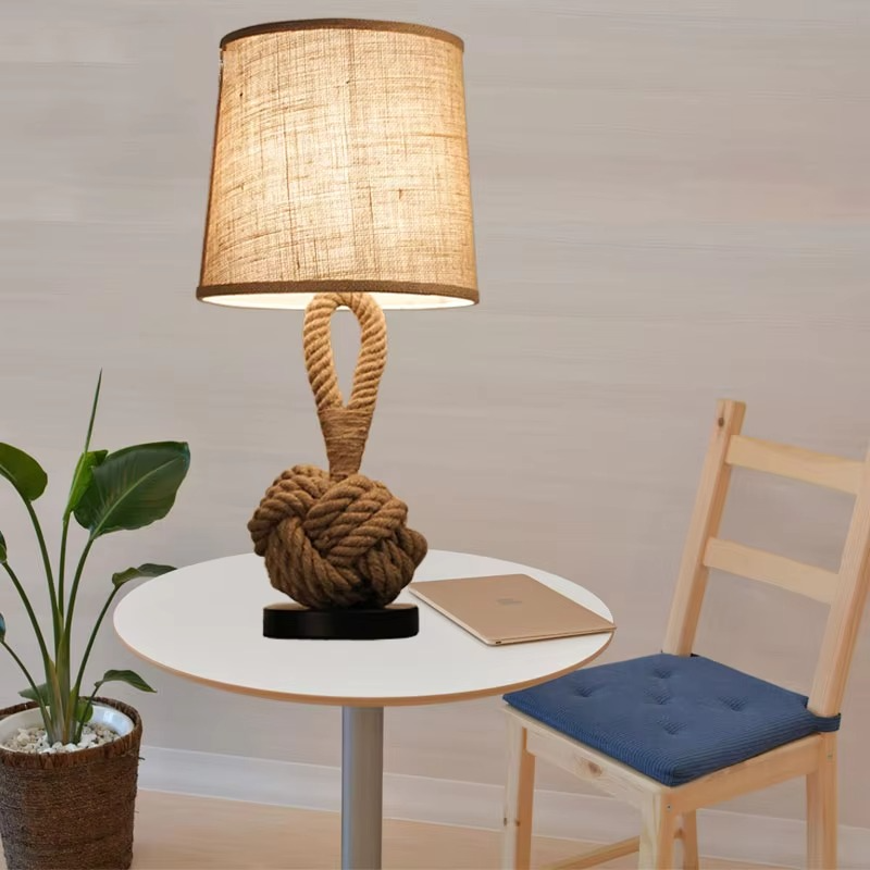 RustiGlow – Bordlampe med hampereb og linnedskærm til hyggelige rustikke rum