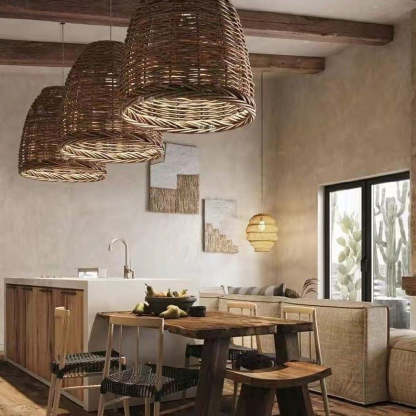 Denne pendelloftslampe har en håndvævet rattanskærm, der giver både dekorativ værdi og funktionel belysning. Den rustikke stil gør den velegnet til interiører inspireret af landhuse såvel som moderne hjem, hvor den tilfører naturlig struktur og blød belysning til stuer, soveværelser eller spisestuer. Designet til daglig brug kan den installeres som enkelt lampe eller i grupper for at komplementere forskellige indretningsstile.