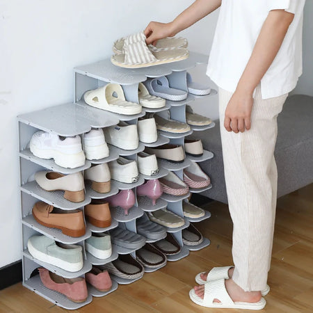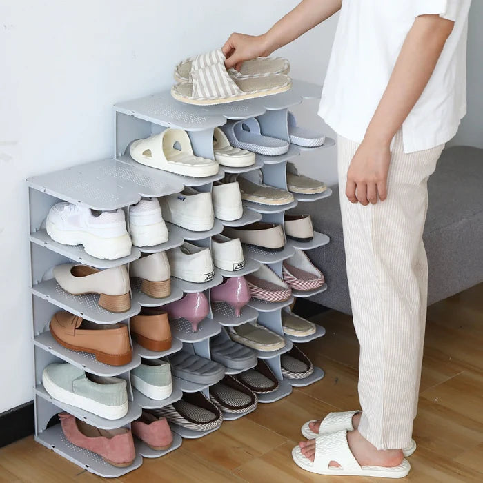 Sig farvel til rodede gulve og uorganiserede sko med de 6-lags modulære skoopbevaringshylder. Disse stabelbare og sammenklappelige hylder giver den perfekte løsning til at organisere dit fodtøj. Uanset om de placeres i din garderobe, entré eller skab, kan de arrangeres, så de passer til ethvert rum, og holder dine sko pæne og let tilgængelige.