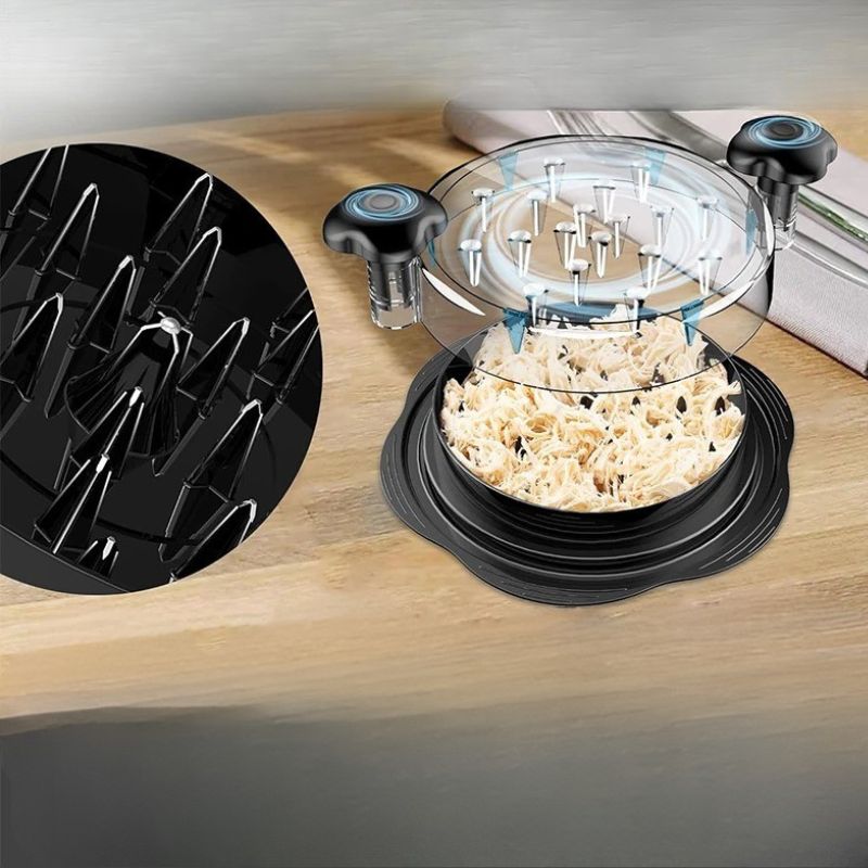 Riv tilberedt kød hurtigt og pænt med denne praktiske kyllingehakker med et sikkert låg. Den holder dit arbejdsområde rent, samtidig med at den sikrer jævne og ensartede resultater for forskellige retter.