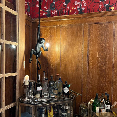SimiaGlow forener historiefortælling og design i en iøjnefaldende pendel, der fanger naturens legende essens. Med sin dristige abefigur, der holder en lysende lampe, forvandler denne lampe dit interiør til en scene, hvor nysgerrighed og kreativitet stråler. Uanset om den hænger i stuen, entreen eller et kreativt rum, giver den både lys og personlighed.