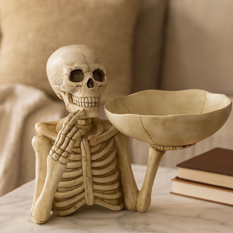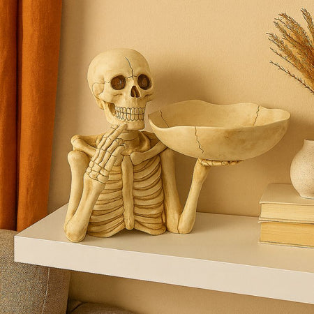 Denne skeletopbevaringsbakke kan placeres på borde, hylder eller skriveborde. Den har en kompakt struktur til at opbevare små genstande indendørs.