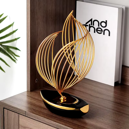 SkyVoyage tilføjer et yndefuldt nautisk præg, der forbedrer ethvert rum med subtil charme. Dens dynamiske linjer indfanger følelsen af bevægelse og bringer energi til din indretning. Denne skulptur er en tankevækkende detalje for dem, der værdsætter meningsfuld kunst. Den forvandler rum med sin polerede og sofistikerede tilstedeværelse.