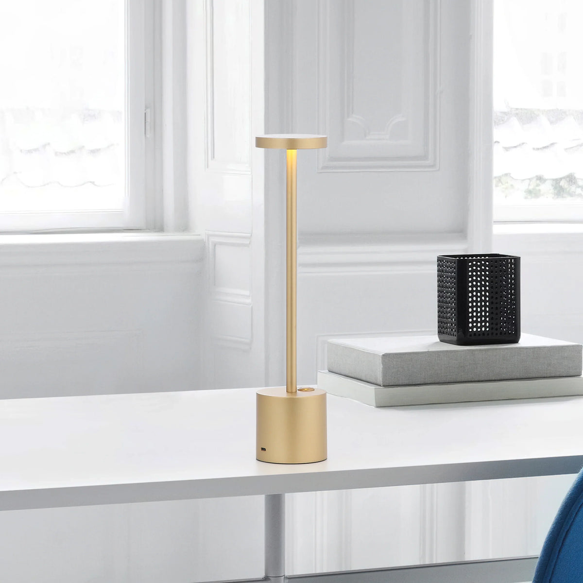 Vi præsenterer SleekShine - genopladelig bordlampe, en stilfuld og praktisk belysningsløsning, der er indbegrebet af elegance og funktionalitet. Denne trådløse lampe er fremstillet af metal i høj kvalitet med en elegant overfladefinish og forbedrer indretningen i ethvert rum ved at tilføje et strejf af raffinement.