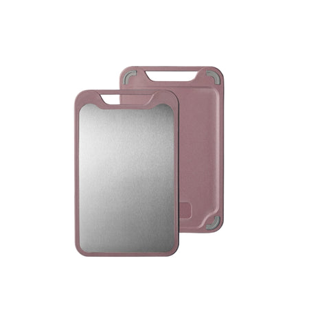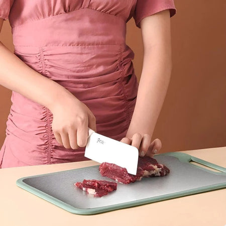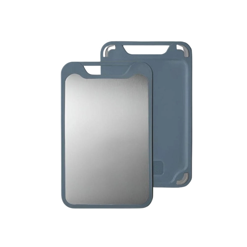SliceMate-skærebrættet har et dobbelt-sidet design, der gør det nemt at holde forskellige fødevarer adskilt under madlavning. Den ene side er lavet af 316 rustfrit stål, hvilket gør den ideel til kød og modstandsdygtig over for pletter og lugt. Den modsatte side er fremstillet af rishalmsfiber, perfekt til frugt og grøntsager. En indbygget hvidløgskværn og saftrille tilføjer ekstra funktionalitet til daglige køkkenopgaver.