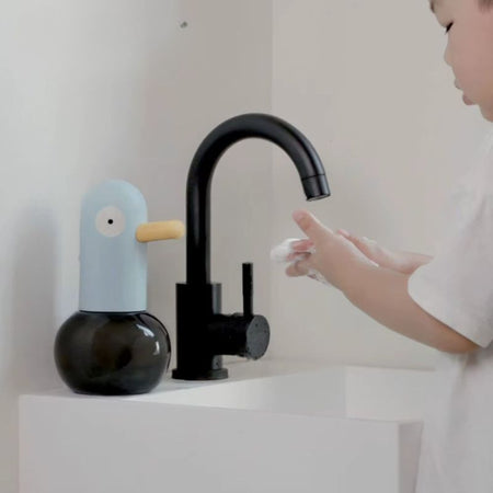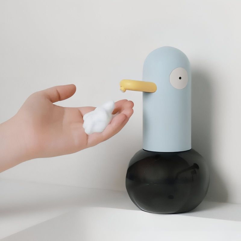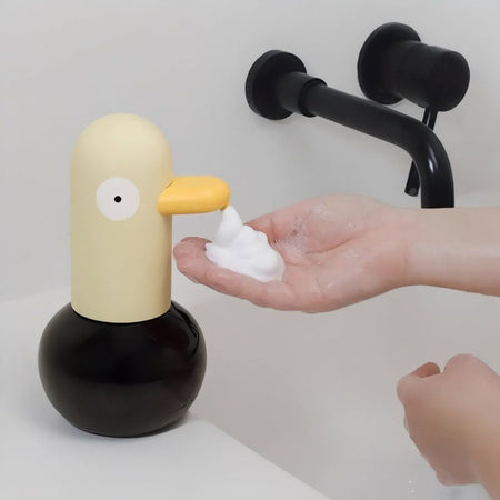 SoapTech sæbedispenseren har en indbygget sensor til automatisk dosering. Dens andeformede design gør den velegnet til brug i køkkener, badeværelser og vaskerum.