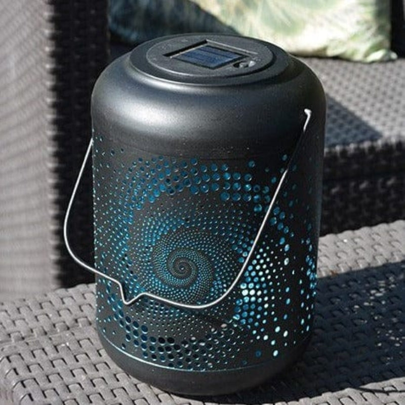SolarAura forbedrer dine udendørsområder med en blød, dekorativ glød. Dens cylindriske form skaber et hvirvlende mønster, der tilføjer dybde og charme til ethvert miljø. Uanset om den hænger fra et træ eller placeres på et bord, blander den funktion med visuel appel. Lanternen bliver et naturligt fokuspunkt i enhver have eller terrasse.