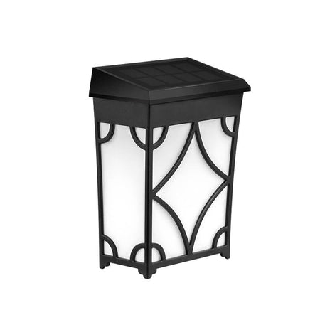 SolarForge-væglampen har en sort firkantet ramme i vintage-inspireret industrielt design. Den er fremstillet af ABS- og PC-materialer og har et indbygget solpanel, der oplades i løbet af dagen og driver LED-lyset om natten.