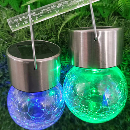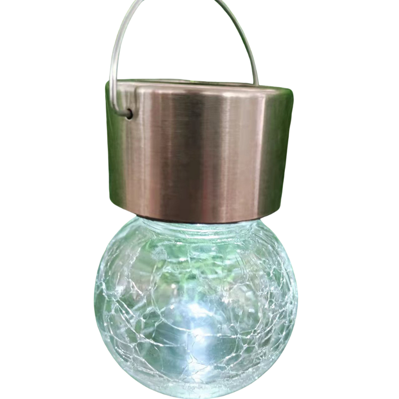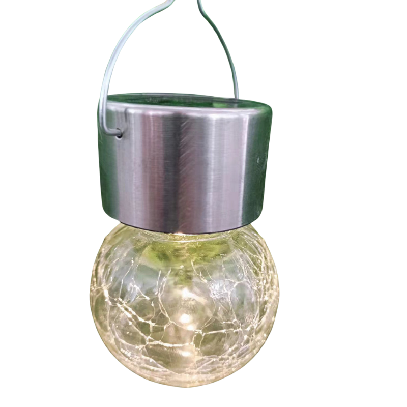 Denne LED udendørslampe har en C-formet struktur fremstillet af rustfrit stål og plast med en glasskærm. Den drives af solenergi og har en indbygget LED med varme, hvide og flerfarvede lysindstillinger.