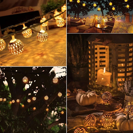 Disse vejrbestandige lys skinner i regn eller solskin og tænder og slukker automatisk ved skumring og daggry. Installationen er enkel, uden behov for ledninger. Dette gør dem ideelle til havefester, bryllupper eller stille aftener udendørs. Du kan nemt hænge dem, hvor du vil, for at lyse dit udendørsområde op.