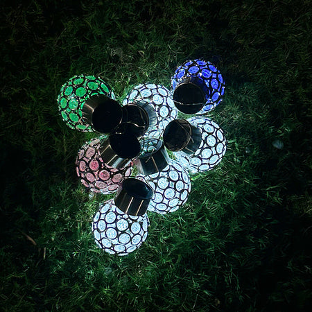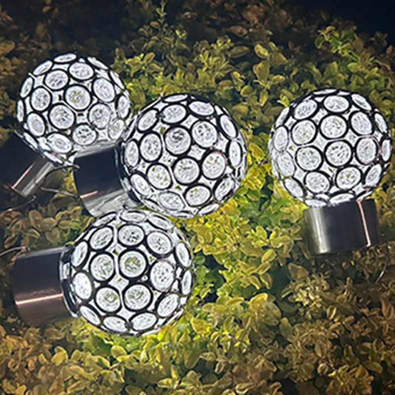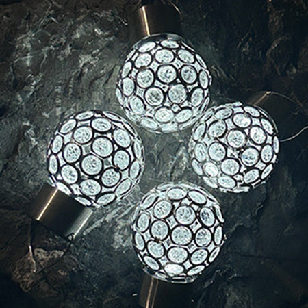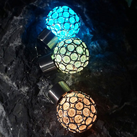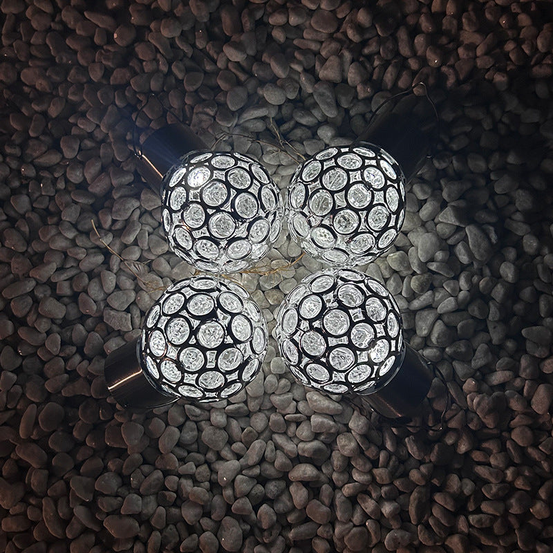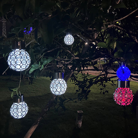 Denne udendørslampe har et hul kugle design lavet af ABS-plast med sølvfinish. Den indeholder en indbygget LED, der drives af solenergi. Lampen er præmonteret til ophængning og beregnet til udendørs brug.