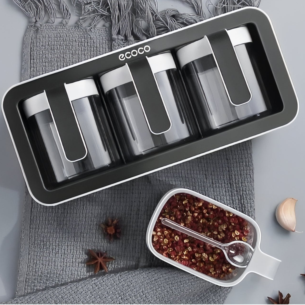 Maksimer dit køkkens effektivitet med SpaceMax multifunktionelle vægmonterede krydderi- og krydderiboks. Denne rektangulære opbevaringsboks er designet med en slank og moderne stil og hjælper med at organisere dine krydderier og krydderier med lethed. De gennemsigtige låg giver mulighed for hurtig identifikation af indholdet, samtidig med at renlighed og hygiejne bevares.
