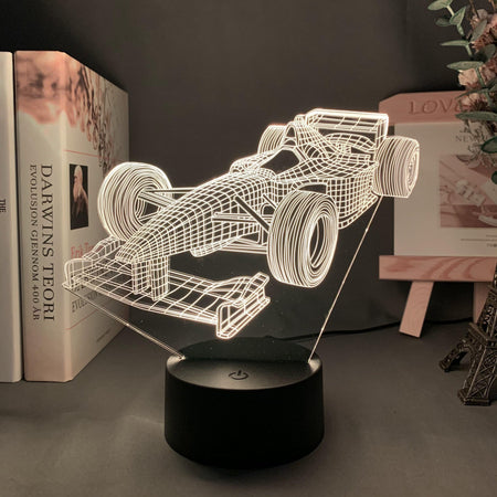 SpeedGlow – 3D Formel 1-racerbillampe med 7-farvet LED-tilstand og fladt design