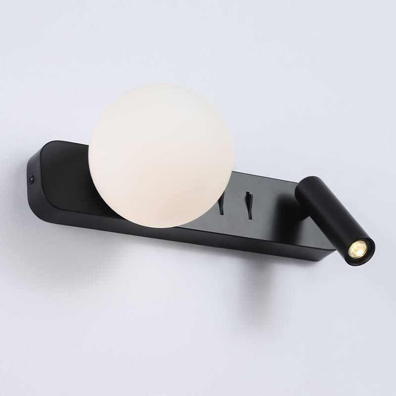 Minimalistisk glas kuglevæglampe med indbygget LED-spotlight