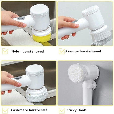 - Udskiftelige børstehoveder til forskellige rengøringsopgaver