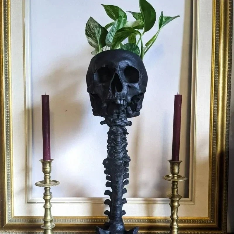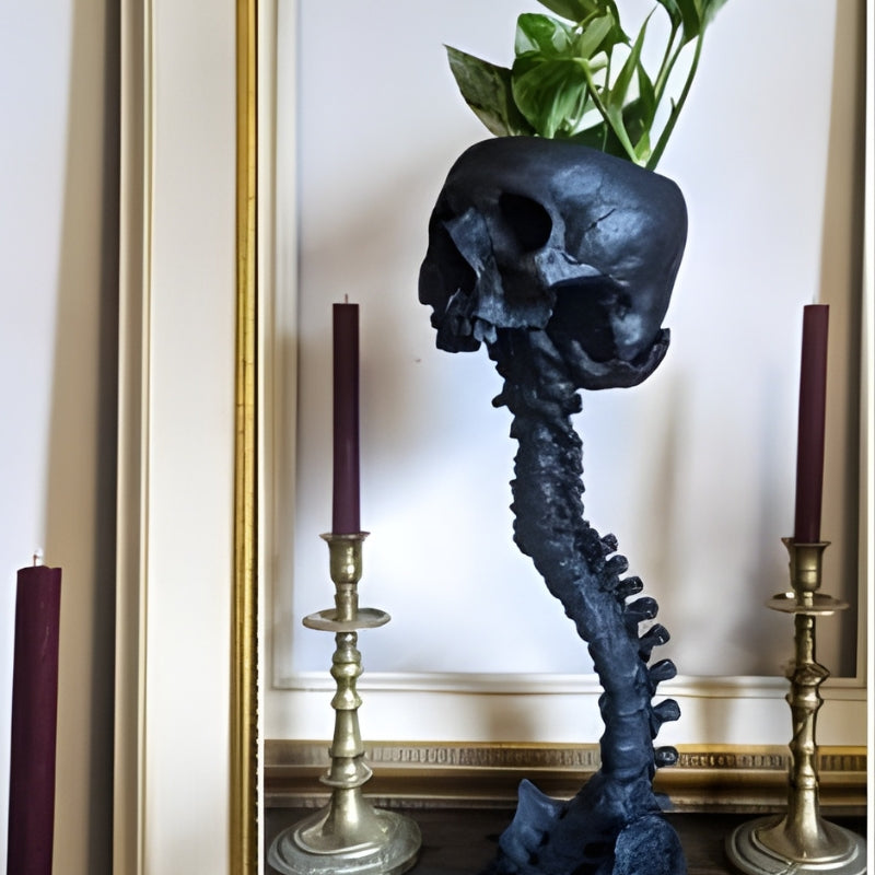 SpineArt – Dekorativ blomsterpotte med skeletinspireret og rygsøjledetaljer